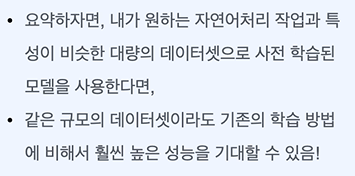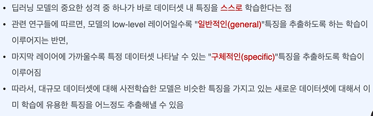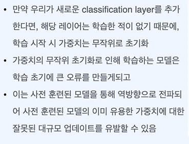 간에 엄청난 차이가 있을 것인데, 아까 말했듯 사전 학습된 모델의 초반 레이어는 자연어에 대한 유용한 특징을 잘 추출해 낼 수 있다.
