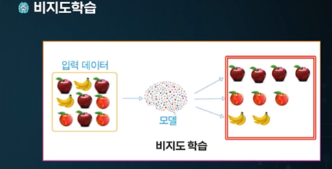 사과와 복숭아, 바나나가 섞여있는 사진에서 스스로 특징을 잡아서 3가지로 분류한다.