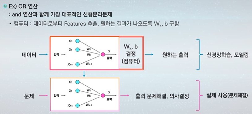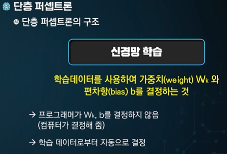 단층 퍼셉트론에서는 어떻게 할까? -> 컴퓨터가 데이터로부터 학습한다.