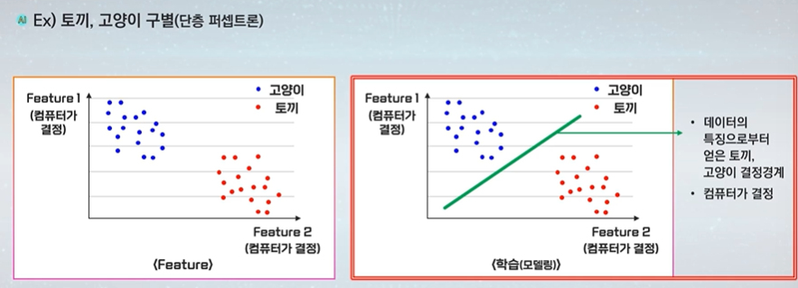 사람이 피쳐를 결정해준다 -> 사람이 꼬리, 귀의 길이를 입력해줬다.