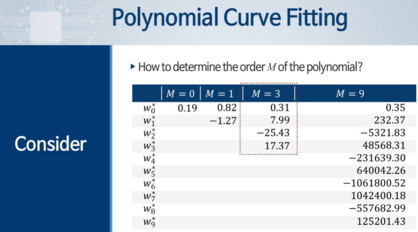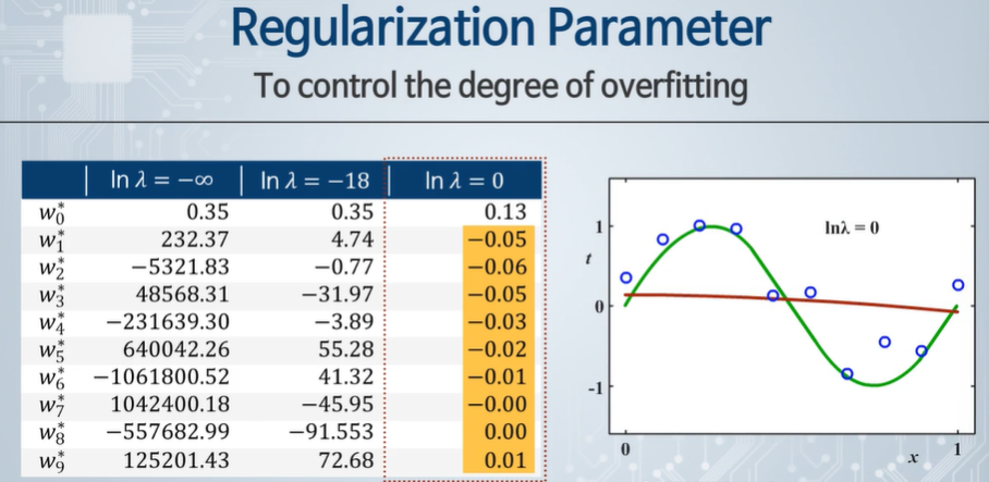 9차인 경우 매우 큰 파라미터 값이 보인다. -> 오버피팅