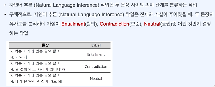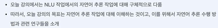 목표 - 대표적인 NLU task의 자연어 추론 작업에 대해 이해할 수 있다.