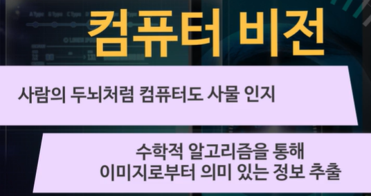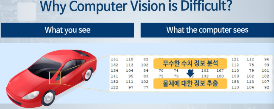 컴퓨터가 보는 것은 눈으로 보는 것 이랑은 다른 수치 정보이다. -> 수치정보를 분석하여 정보 추출