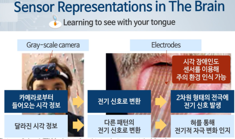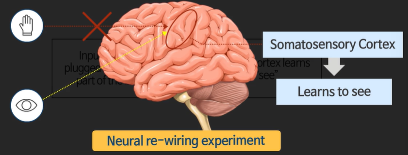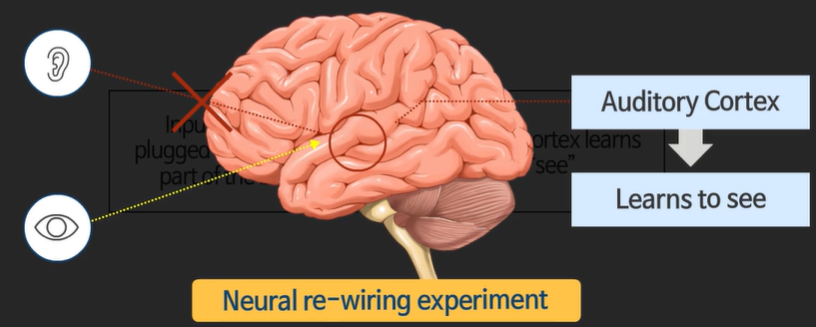 청각 담당 부분을 시각 센서와 연결 -> 청각 부분도 시각 부분을 담당할 수 있다.