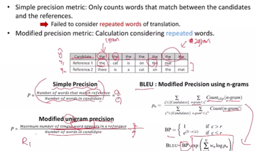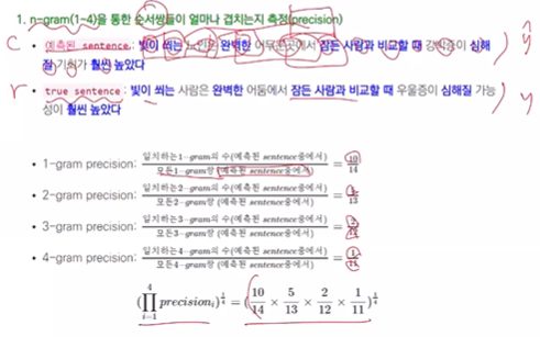 BLEU - 지도학습과 비슷하다. 라벨이 있다.