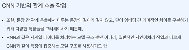 관계 추출 작업은 구조적인 작업이므로 CNN도 활용 가능하다.