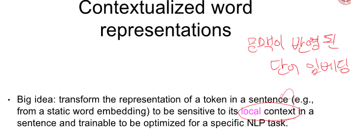 Contextualized - 단어의 의미가 문장에 따라 다르다. -> 문장 구성에 따라 임베딩이 업데이트가 된다.
