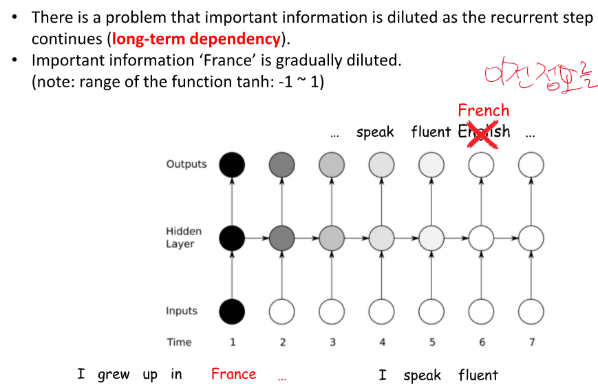 이전의 정보를 가지고 온다 -> 먼 정보는 희미해진다.(사라진다, 희석된다....)