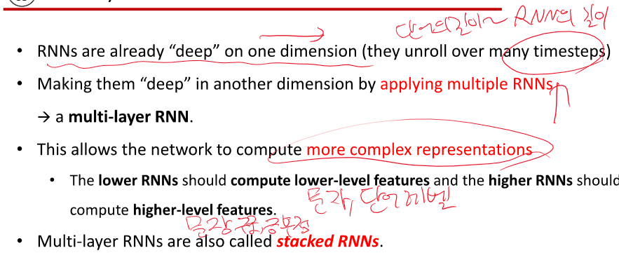 기본적인 RNN 구조에서 parameter vector는 입력에 한개, 이전 입력에 대해 넘어 오는 것에서 한개, 출력으로 보내는 것에 한 개 있잖아