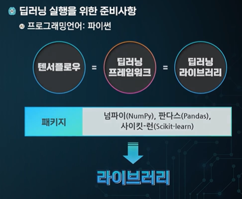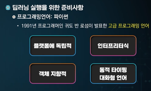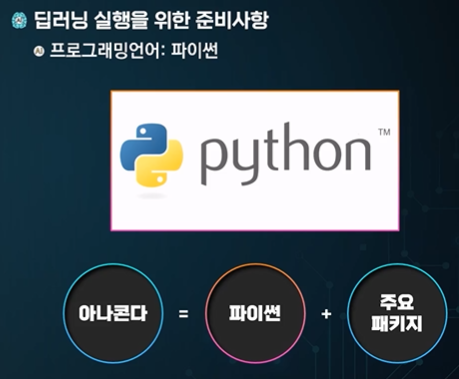 OS 환경 위에서 파이썬, 텐서플로우 -> 딥러닝