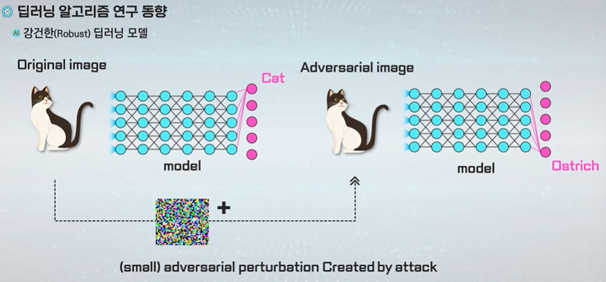 일반적인 딥러닝 모델은 작은 오류(노이즈)에도 민감하게 반응한다.(오작동)