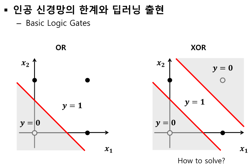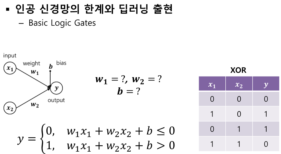 XOR은 단층 신경망으론 절대로 못 만든다...