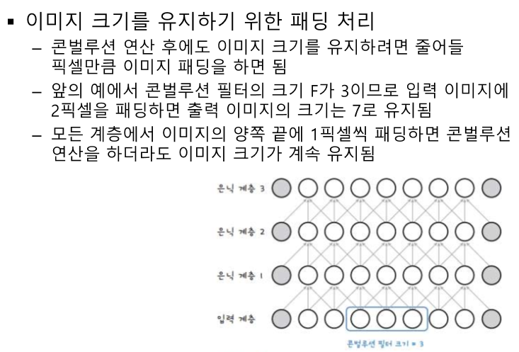 풀링은 모든 layer에 사용하는 것은 아니고 필요할 때 적절하게 사용한다. 패딩을 할 순 있지만 안 할뿐