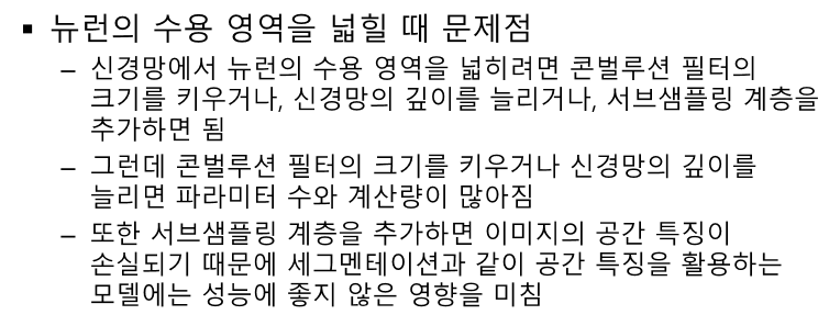 수용 영역을 넓힌다 -> 필터 사이즈를 키운다. or 깊게 쌓는다.