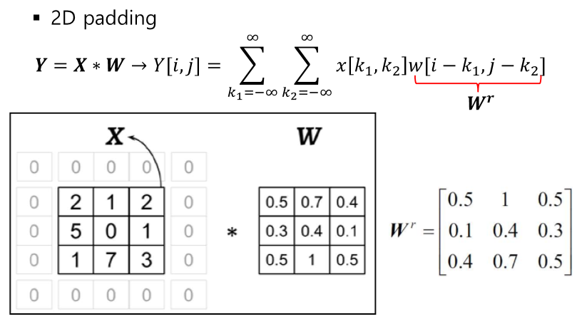 입력을 약간 펼치고, 패딩을 하여 기존의 Convolution과 동일하게 진행한다.