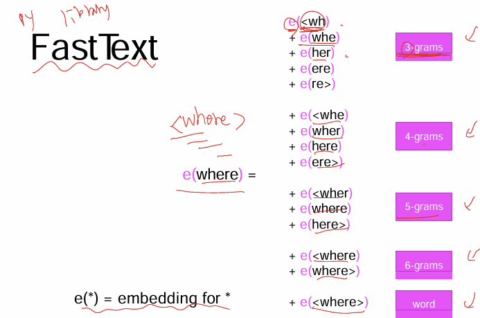 Fast Text임베딩은 모든 임베딩이 다있을 때 새로운 단어에 대한 임베딩은 저렇게 n-gram으로 나눠서 만들 수 있다.