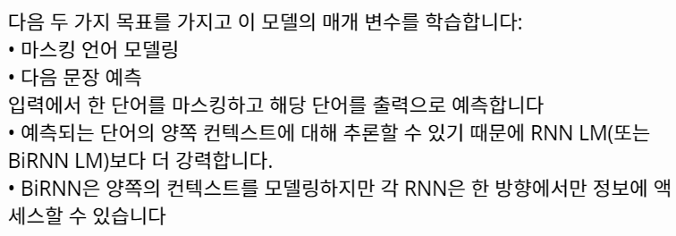 • BiLSTM은 단어 임베딩을 문맥에서의 사용에 민감하도록 변환할 수 있습니다.