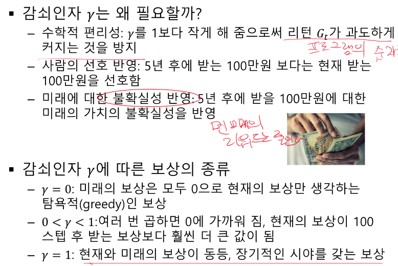 감쇠인자를 통해 미래 보상의 불확실성을 표현할 수 있따.