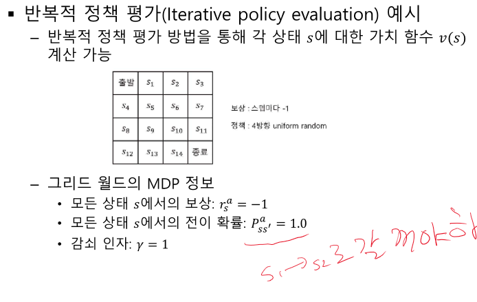 반복적 정책 평가 - 랜덤 or 특정 정책에 대해 계속 반복