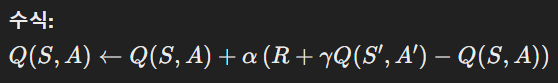 SARSA는 온-폴리시 TD 학습 방법으로, 현재 상태와 행동에서 얻은 보상 및 다음 상태와 행동의 가치를 사용하여 현재의 행동 가치를 업데이트합니다.