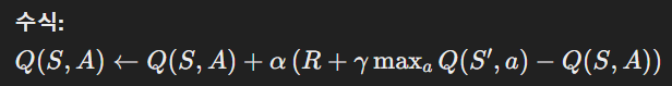 Q러닝은 오프-폴리시 TD 학습 방법으로, 다음 상태의 최대 가치를 이용하여 현재의 행동 가치를 업데이트합니다. 이는 에이전트가 실제로 선택하지 않은 행동의 가치도 업데이트할 수 있게 합니다.