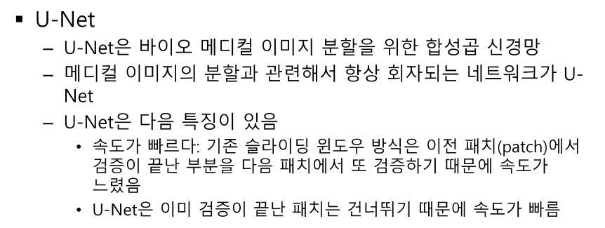따라서, U-Net은 특히 높은 처리 속도를 목적으로 설계된 모델은 아닙니다. 그 목적은 주로 정밀한 이미지 세분화와 특징 복구에 있습니다. 이로 인해 c. 높은 처리 속도는 U-Net 모델의 특징이라고 보기 어렵습니다.