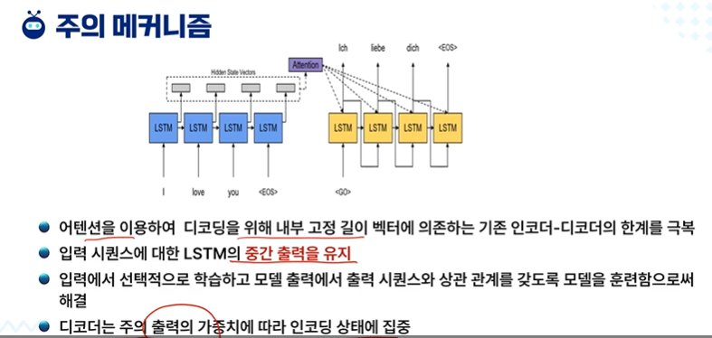 RNN 인코더-디코더 모델에서 주의(Attention) 메커니즘의 필요성이 대두된 주된 이유는 b. 긴 입력 시퀀스를 처리하는 데 어려움이 있음입니다.
