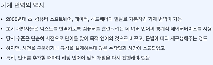 | 자연어 처리 기계 번역 - 규칙, 통계 기반 기계 번역 (0) | 2024.04.26 |