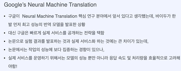 서비스 - 성능과 서비스 모두 좋아야 한다. -> 번역도 빨리 빨리 되어야 한다.