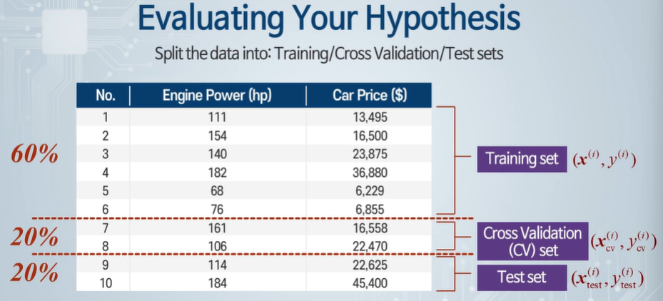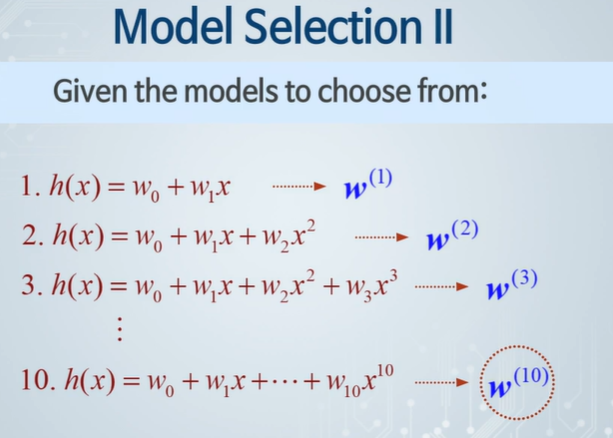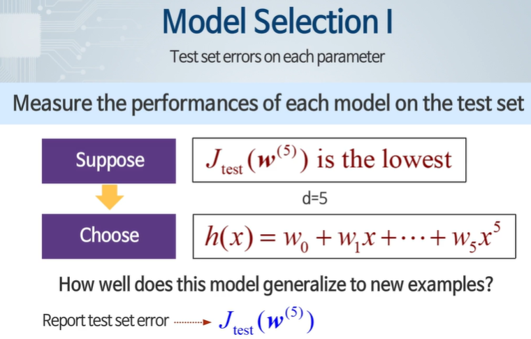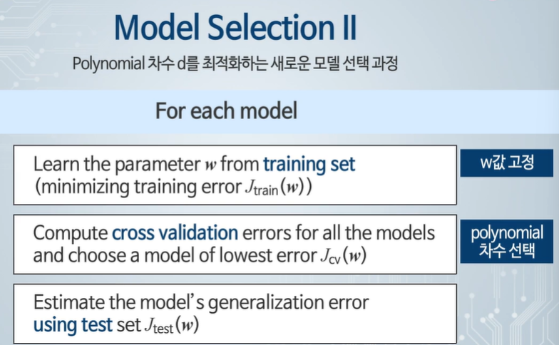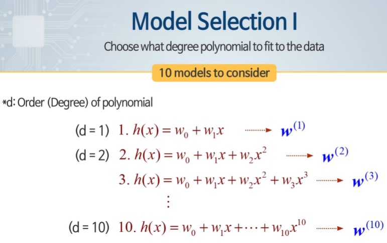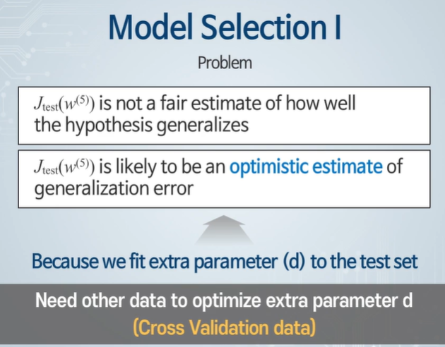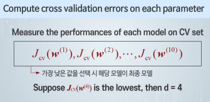 validation을 통해 최소 오차인 차수를 구한다! -> 그걸로 test data를 오차 계산