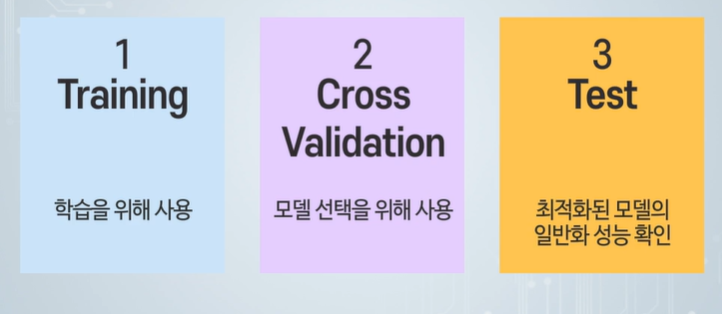 - "테스트 데이터 셋을 사용하여 최적의 모델을 선택하고, 검증 데이터 셋을 이용하여 모델의 성능을 평가할 수 있다."
