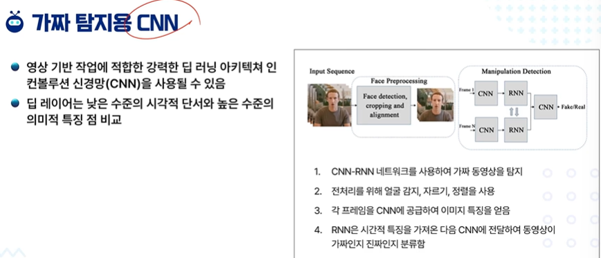 이러한 CNN 모델은 특히 조작된 이미지의 특정 특성을 학습할 수 있으며, 딥페이크 또는 이미지 합성과 같은 조작을 식별하는 데 효과적입니다.
