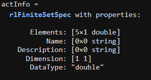 actInfo = rlNumericSpec([2,1],"LowerLimit",-1,"UpperLimit",1)