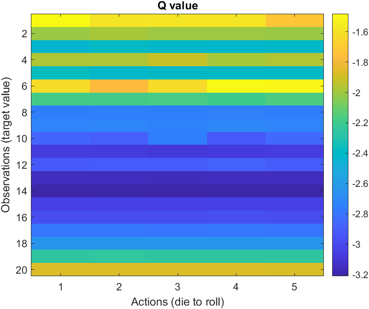 낮은 목푯값이 항상 높은 Q 값에 대응하지는 않는다는 점에 유의하세요. 이 예제에서는 0에 도달하기 위해 굴려야 하는 평균 주사위 횟수에 의해 Q 값이 결정됩니다. 주어진 주사위의 값에 대해, 다른 목표값보다 더 어려운 목표값이 있나요?