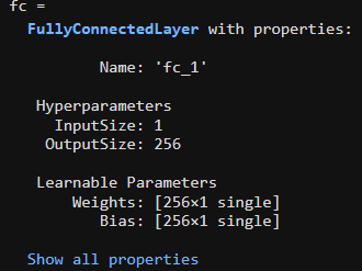 완전 연결 계층에는 각 뉴런에 대한 파라미터를 표현하는 가중치 배열과 편향 배열이 있습니다. 이러한 파라미터의 값은 일반적으로 훈련 중에 결정됩니다.