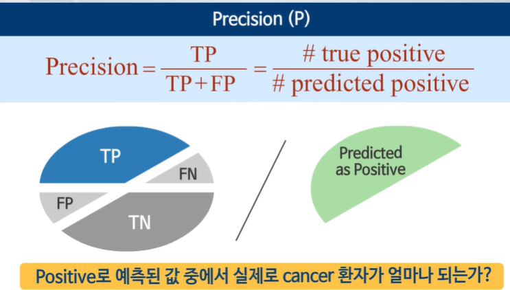 재현율 - 참인 중에 참이라고 예측한 경우 (이게 암 환자한테 중요하다고 느끼네요..)