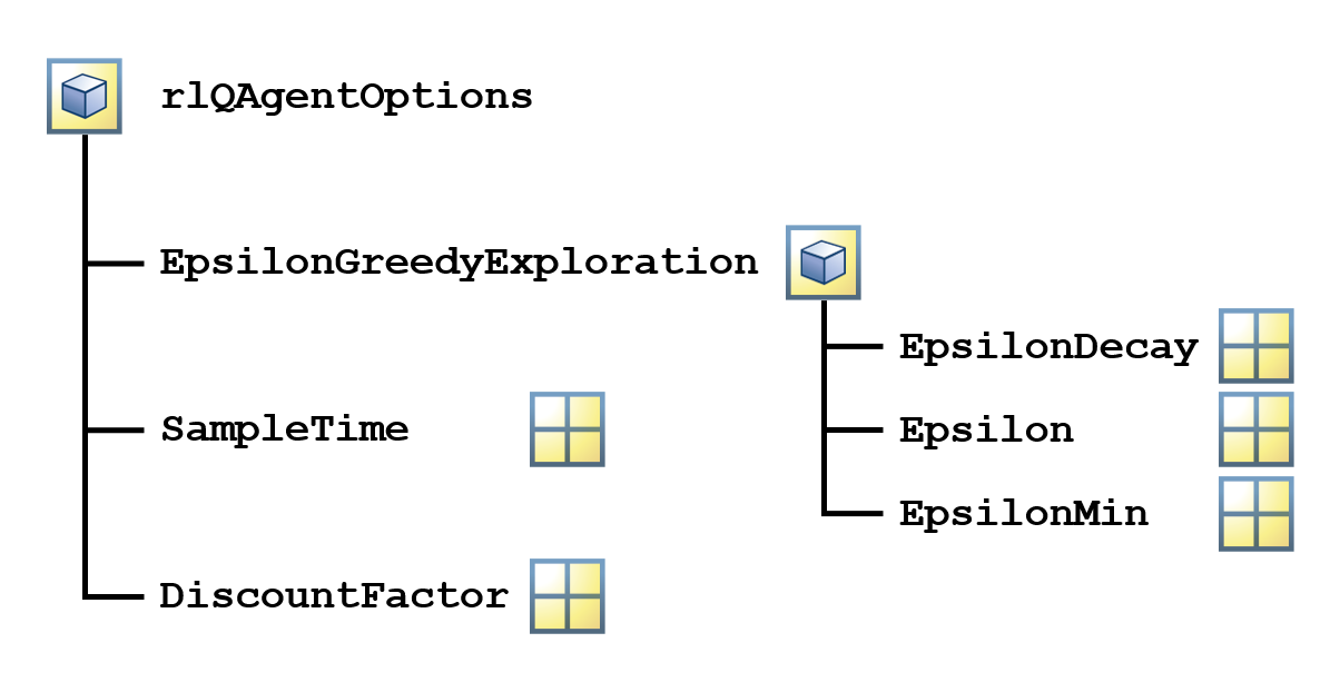 모든 rl*Agent 함수는 대응되는 rl*AgentOptions 함수를 생성한 옵션 변수를 받습니다.