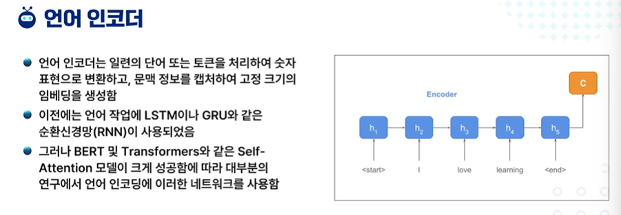 언어 인코더 RNN -> LSTM, GRU -> Transformer