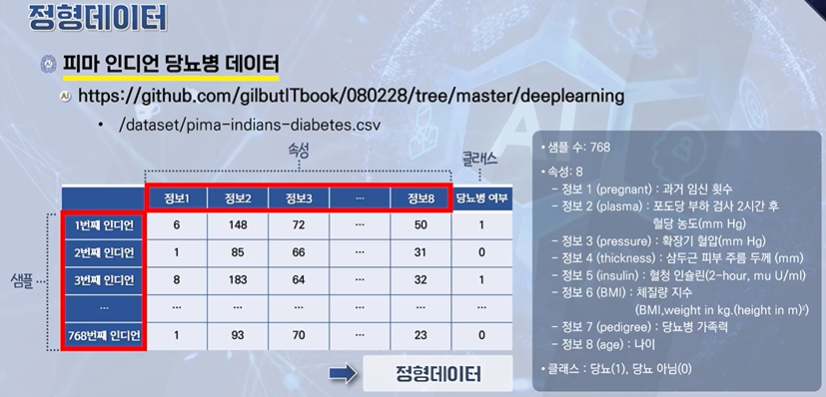 정형 데이터 - 엑셀과 같이 정리된 데이터들