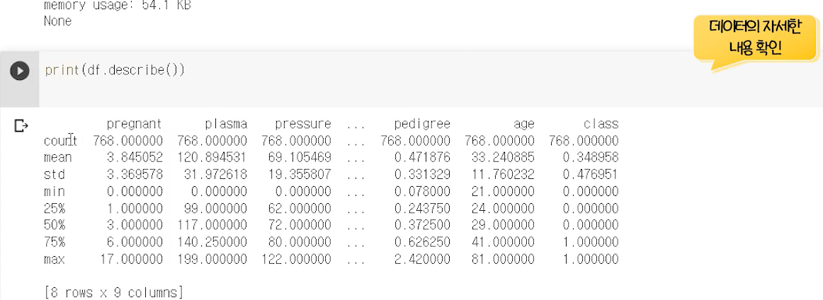 평균, 분산, 개수 등 자세한 청보를 확인할 수 있다.