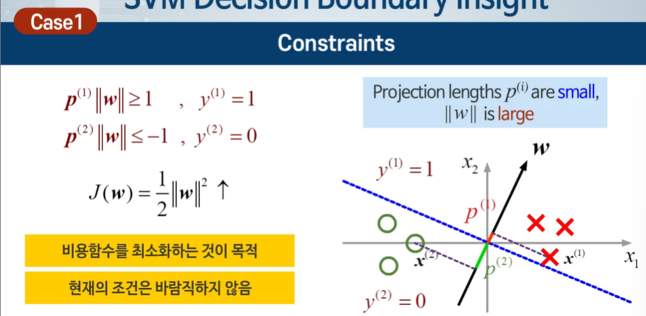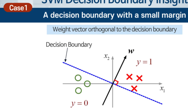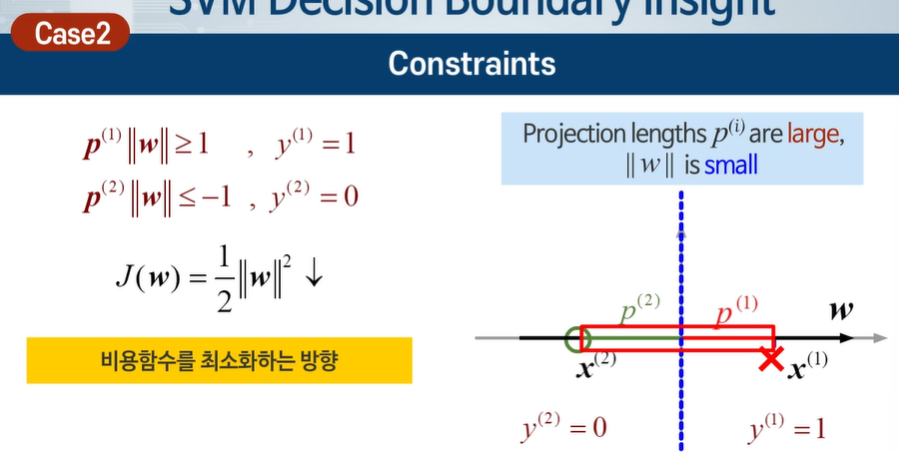 최대 마진 분류 선을 만들어서 일반화 성능이 높다 ! -> 이상적이다.
