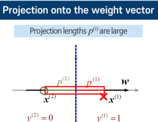 이렇게 p가 크다면 w가 작아서 비용함수가 작아진다.