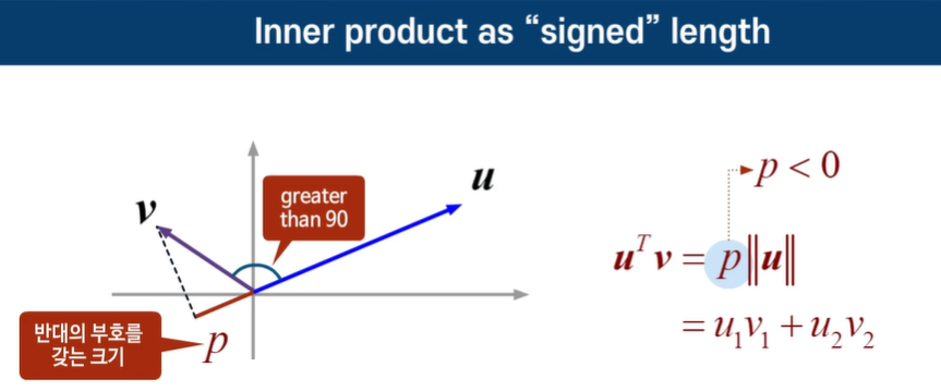 p의 길이는 v의 그림자 길이와 같다.