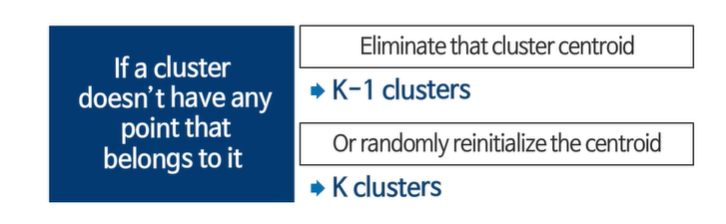 어떤 클러스터가 아무런 포인트도 포함하지 못한다!