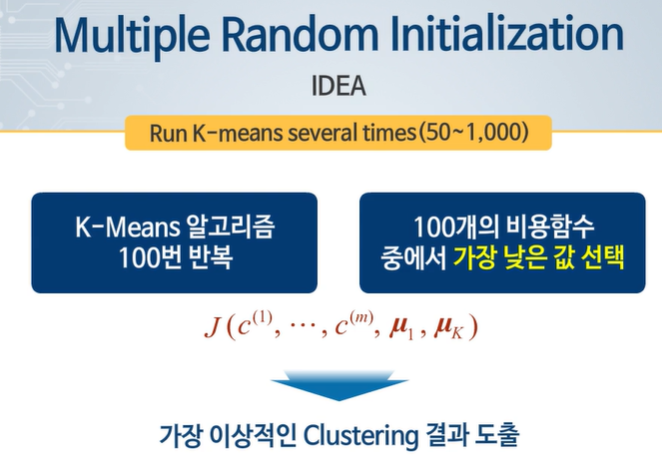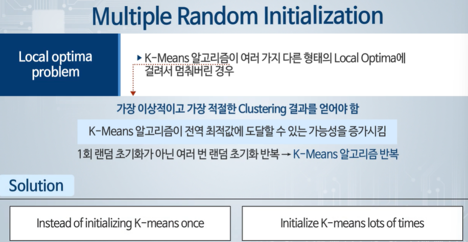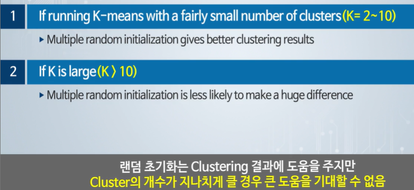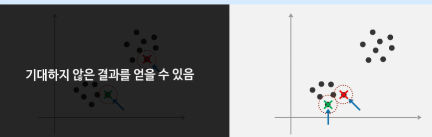 클러스터의 개수가 많으면 랜덤 초기화를 반복해도 나은 결과가 안 나올 수 있다.