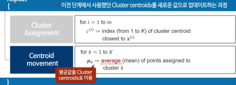 유사한 데이터 표시 -> 센터로이드 옮기기 -> 다시 유사한 데이터들 표시 -> 센터로이드 옮기기