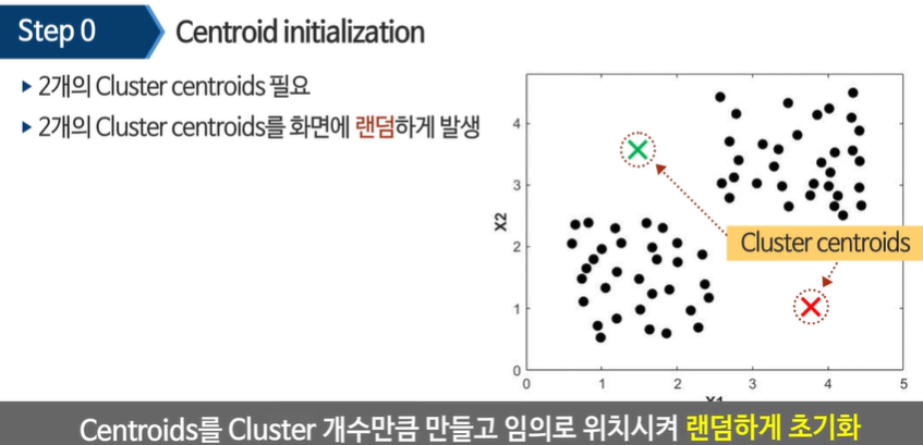 제일 처음 하는 일은 랜덤 하게 센트로이드를 초기화한다.