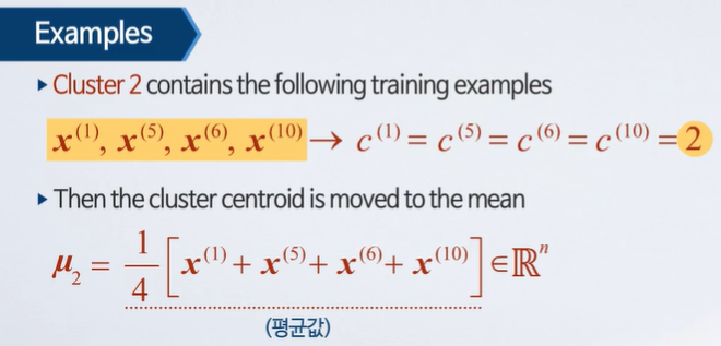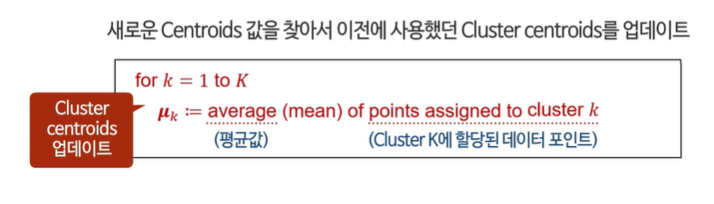 새로운 클러스터 중심을 계산한다.