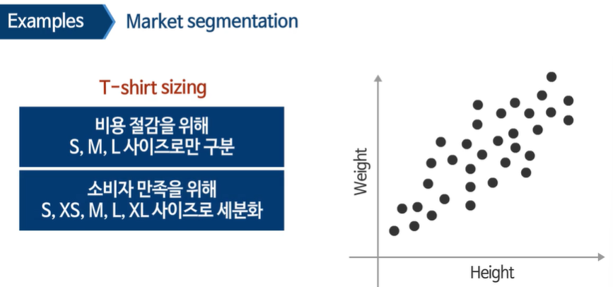 소비자들의 그룹을 소비 패턴에 따라 몇 개의 그룹으로 clustering 할 수 있다.