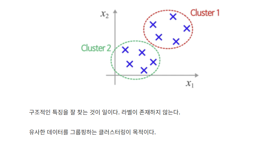 “비지도 학습은 라벨이 지정되지 않은 데이터를 이용하여 학습하는 알고리즘이며, 데이터의 구조적 특성을 찾는 클러스터링은 그 중 한 예이다.”